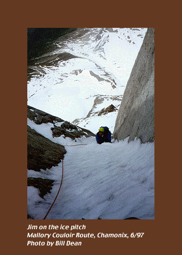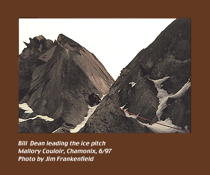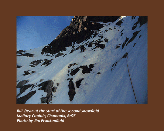 the bottom of all couloirs. Fortunately the Mallory Couloir has minimal exposure