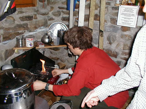 Jim Delzer and the stove. Watch out!
